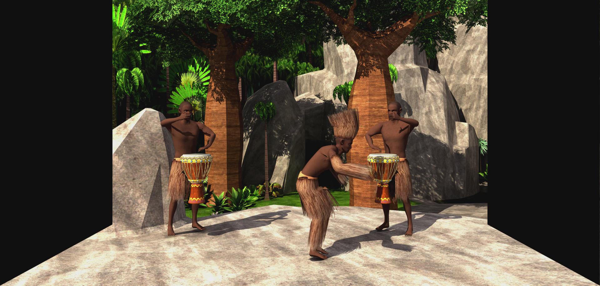 坎科冉是塞內加爾和岡比亞的曼丁人地區的一種成年禮,相當于“卡薩曼斯”(Casamance)。坎科冉儀式主要的特征是:受成年禮者帶著用樹皮和faara樹的紅根須做成的面具,穿著樹葉做成的衣服,用蔬菜漿汁涂畫全身。該影片利用三維動畫形象描述了坎科冉或曼丁成人禮的效果,體現了曼丁的文化特性,立體效果強烈。